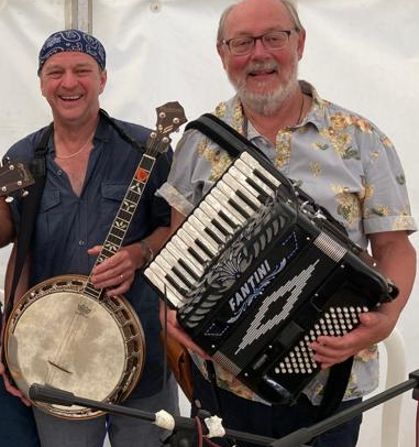 Bob and Paul bring experience, skill and tremendous enthusiasm to entertaining audiences. Bob plays piano accordion, sings accompanied and unaccompanied songs from around the UK and beyond, and plays a range of traditional tunes. Paul plays banjo and mandolin, has a vast array of Irish, English, American and other tunes, and sings.